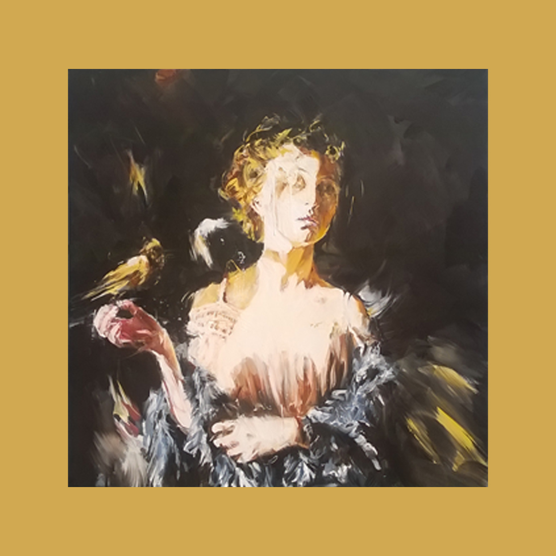 From a series around tropes in visual art. Negative space is a feature of the composition, allowing the focal point to be the reader.