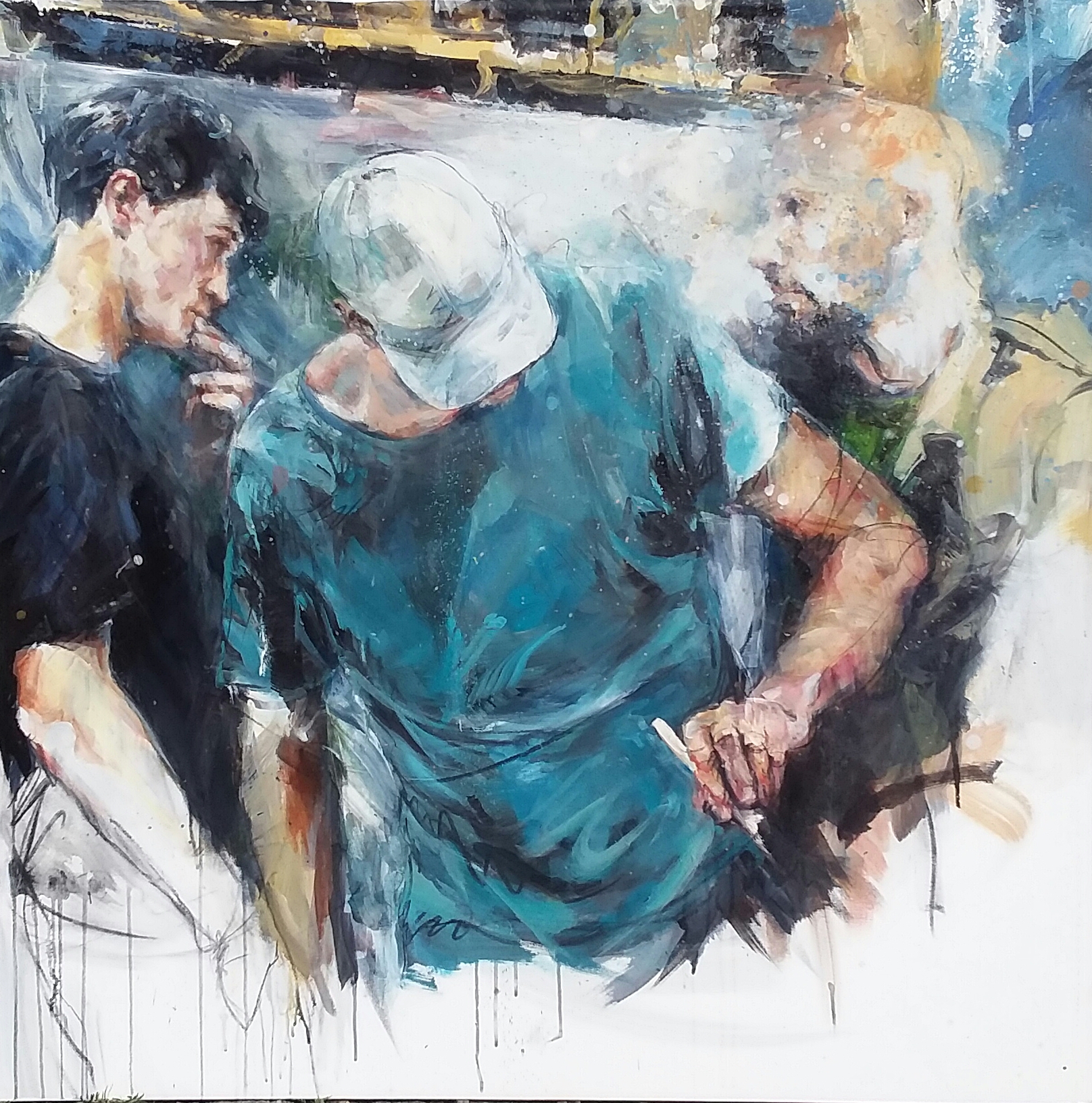 The Three Graces are Greek goddesses of beauty, grace, and joy, typically depicted as three sisters named Aglaia (radiance), Euphrosyne (joy), and Thalia (abundance). They are associated with artistic inspiration, beauty in nature and art, and the concept of reciprocity and generosity. I have chosen three contemporary male painters, putting my twist on the usual depictions of the Graces in art.