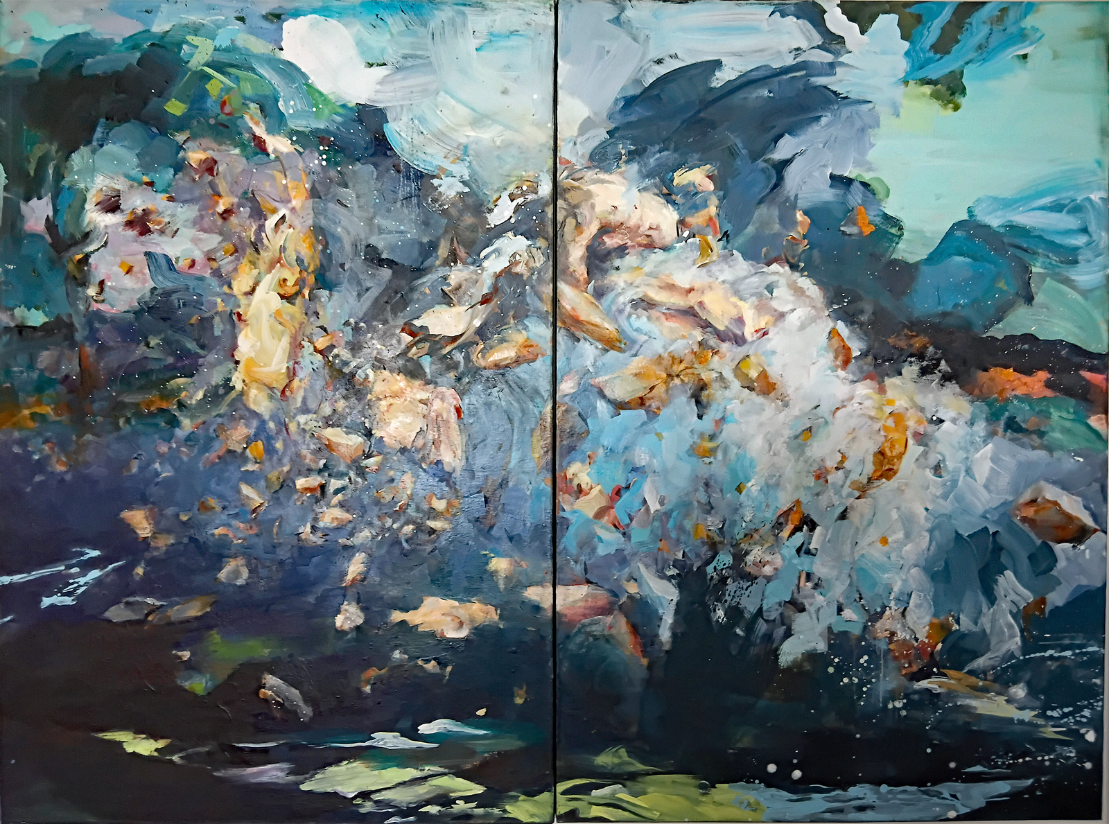 This painting is a depiction of the myth of Adam and Eve. I have chosen to illustrate the tipping point, where the status quo is changed forever. In this myth, the result of previous actions became the advent of original sin.